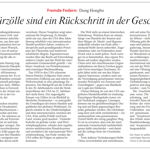 Placement of PRC Party-State Content Chinese Diplomat Runs Article in Berlin Paper Ahead of EU-China SummitGermany