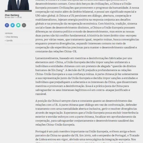Media Partnership or Co-Production Chinese Ambassador Criticizes EU Sanctions in Portuguese PressPortugal