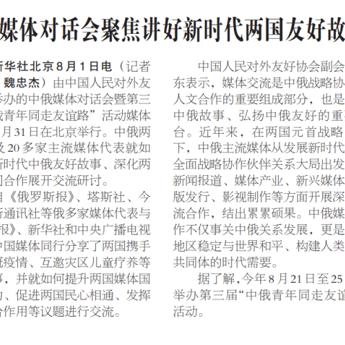 Media Summit China-Russia Media Dialogue Focuses on Telling Stories of Bilateral FriendshipChina, Russia