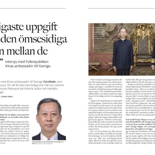 Media Partnership or Co-Production Chinese Embassy in Sweden’s Chargé d’Affaires ad interim pens an article to promote China’s economySweden