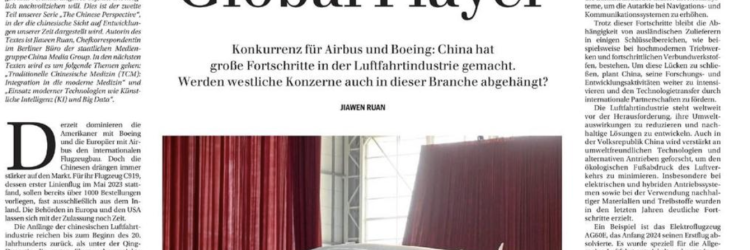 On November 30, 2024, German daily Berliner Zeitung published the second installment of “China Perspective” (中國視角), a column created through a partnership with the Europe bureau of China Media Group (CMG), the media conglomerate under the CCP’s Central Propaganda Department. The article was a signed piece by a CCTV journalist titled “Becoming a Major Global Player.” It focused on China’s aviation industry, presenting the country’s commercial aircraft development as evidence of its shift “from technological catch-up to international competition.” The piece also highlighted China’s work on electric and hybrid aircraft and sustainable aviation fuel. The Chinese report on the placement of the article mentioned the promotion of “China solutions” (中国方案) for global development.