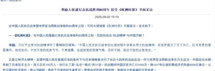 On September 3, 2025, Nouvelles d’Europe (歐洲時報), a Chinese-language newspaper founded in Paris in 1983 and now operated under the official China News Service and the United Front Work Department of the CCP, published a written interview with the Chinese ambassador to France to commemorate the 80th anniversary of the end of World War II. In the interview with the newspaper, whose majority shares are held by by the Hong Kong registered Asia Culture Enterprise Limited, or “Ya Zhou Wen Hua Enterprises,” an entity founded in 1997 by the Overseas Chinese Affairs Office (OCAO), the ambassador promoted China’s version of WWII history and portrayed the PRC as a defender of multilateralism. He claimed China was “the main battlefield in the East” and emphasized Taiwan’s return to China as part of the post-war order, while portraying the PRC as the first to sign the UN Charter. However, it was the Republic of China (ROC) under Chiang Kai-shek’s Nationalist government that signed the 1942 UN Declaration and 1945 UN Charter as the leading force fighting Japan. The PRC was established in 1949, four years after the end of WWII.