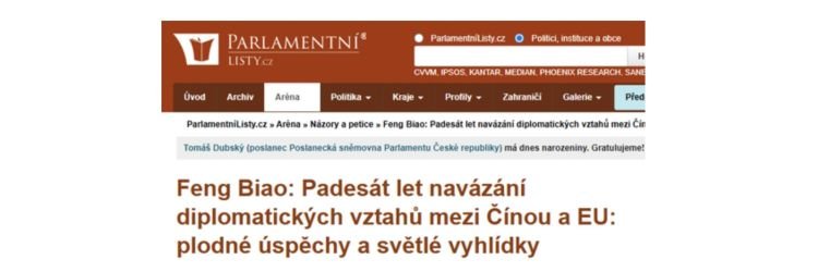 On July 21, 2025, Chinese Ambassador to the Czech Republic Feng Biao (冯飚) published an op-ed in Czech publication Parlamentní Listy (议会报) titled “Fifty Years of China-Europe Diplomatic Relations: Fruitful Results, Bright Prospects,” commemorating the 50th anniversary of China-EU diplomatic relations. The ambassador promoted expanding bilateral trade relationships, claiming annual trade volumes grew “from 2.4 billion dollars to over 780 billion dollars” and positioning mutual investment stock at “nearly 260 billion dollars.” Feng defended China’s market access policies and dismissed concerns about trade imbalances, stating “the surplus is on China’s side, the profits are on Europe’s side.” The article employed standard PRC diplomatic terminology about “comprehensive strategic partnership” (全面战略伙伴关系) and called for “dialogue and cooperation” (对话合作) while promoting the upcoming 25th China-EU Leaders’ Meeting in Beijing.