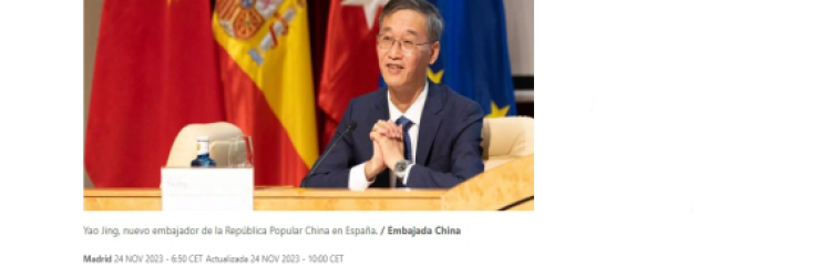 On November 24, 2023, Chinese Ambassador to Spain Yao Jing (姚敬) published a signed article in the Barcelona-based newspaper El Periódico advancing China’s economic messaging. Titled “China Will Promote Common Global Development Through High-Level Opening-Up” (中國將以高水平對外開放推動世界共同發展), the piece says China’s growth in the first three quarters of 2023 reached 5.2 percent, which Yao framed as demonstrating the “correctness” of Chinese government policies. He highlighted the opening of the China International Import Expo, positioning China as a contributor to global economic development. Despite targeting a foreign audience, the article was full of official CCP terminologies, including political signaling such as a reference to “the central CCP leadership with Xi Jinping as the core” (習近平同志為核心的黨中央).