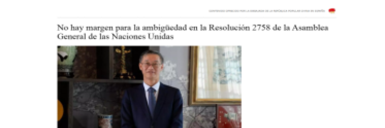 On February 26, 2025, Chinese Ambassador to Spain Yao Jing (姚敬) published an article in the digital newspaper El Periódico de España titled “There Is No Room for Ambiguity in UN General Assembly Resolution 2758.” In the article, he argued that UN General Assembly Resolution 2758 — which transferred China’s seat in the United Nations from the Republic of China (Taiwan) to the People’s Republic of China in October 1971 — settled Taiwan’s status as part of China. Not surprisingly, Yao’s argument perfectly mirrored the Chinese Communist Party’s official position on the resolution, which holds that Taiwan is “an inalienable part of China’s territory” (中國領土不可分割的一部分), a claim known as the “One China Principle.” This principle asserts that there is only one China, that Taiwan is part of it, and that the PRC is its sole legitimate government. However, the full text of the resolution makes no mention of Taiwan or the Republic of China, nor does it make any determination about its sovereignty — it deals only with the question of who will represent China at the United Nations. Commemorating the 20th anniversary of the China-Spain Comprehensive Strategic Partnership, which he said had deepened economic cooperation, trade and green energy, Yao called on Spain to “jointly defend the authority and effectiveness” of the resolution. He urged Spain to actively back the CCP’s interpretation of the 2758 resolution. However, Spain follows the One-China policy regarding Taiwan, meaning it acknowledges Beijing’s position but does not endorse China’s sovereignty over the island.