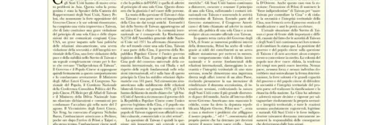 On August 5, 2022, Corriere della Sera published a paid half-page article written by the Chinese Consul General, titled “Chi gioca col fuoco finisce per bruciarsi” (“He Who Plays with Fire Risks Getting Burned”). The piece attacked US House Speaker Nancy Pelosi for her August 2-3 visit to Taiwan, echoing Chinese President Xi Jinping’s warnings at the time to President Joe Biden. The consul general claimed Pelosi’s visit was a “serious violation of the one-China principle” and predicted it would “accelerate” reunification rather than prevent it. The publication of the article prompted immediate criticism from the Lombardy Association of Journalists, whose president called it “embarrassing” for the Italian press to publish such paid propaganda “with no contradictory opinion.”