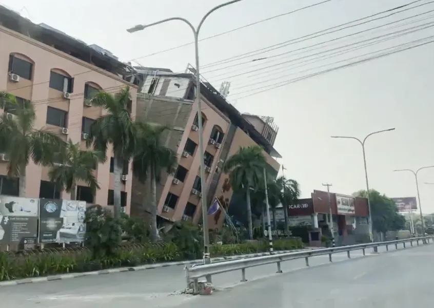 Screenshot of a video from China News Service that shows the aftermath of the Myanmar earthquake. SOURCE: Wikimedia Commons.